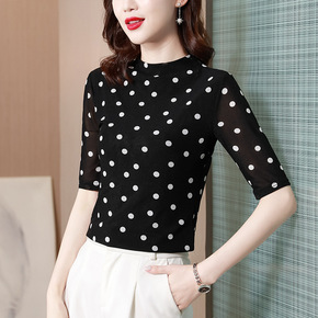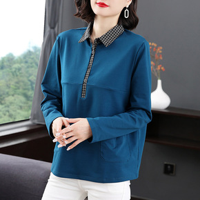 中年妈妈装休闲POLO领长袖上衣2022年春秋新款...