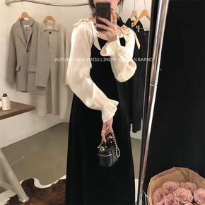 春季长袖黑色打底中长款连衣裙女装新款潮裙子秋装女新...