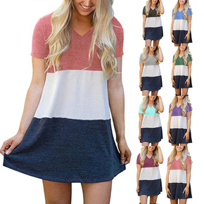 2021亚马逊外贸新款春夏跨境新款欧美女装拼色V领...