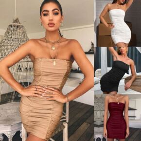 2021春夏季新款长袖斜领露肩性感收腰连衣裙白衬衫...