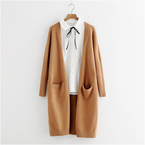 女士外套中长款针织开衫宽松纯色口袋毛衣宽松上衣...