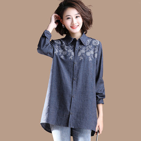 素木原创2022春季新款文艺大码全棉宽松刺绣长袖衬...