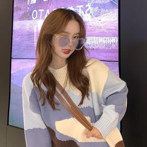 2021秋冬季设计感小众撞色外穿毛衣女网红复古宽松...