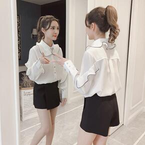 2022年新款春装女士衬衫心机上衣设计感小众秋冬款...