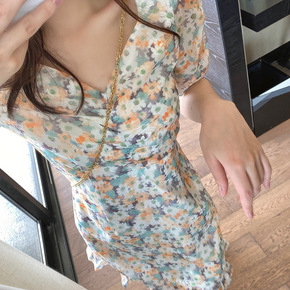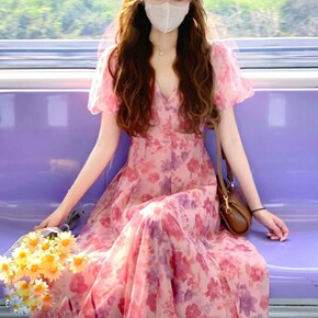 2022春季新款雪纺连衣裙夏季气质高级简约收腰百褶...