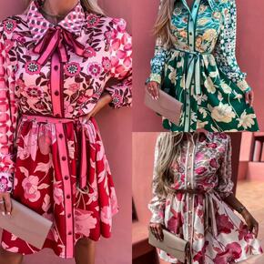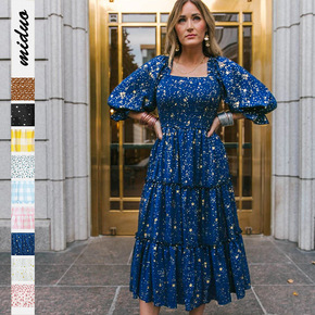 外贸wish2020欧美女装连衣裙秋装波西米亚风印...