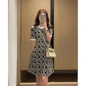 小香风夏季裙子纯欲印花连衣裙气质高级南油高端女装黑...