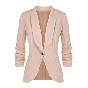 速卖通WISH2020秋季新款欧美纯色时尚翻领修身...