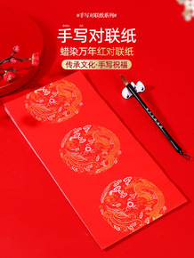 加厚手写对联纸 空白万年红斗方 4字小对联 福字纸...