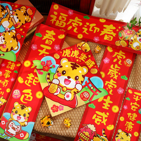 2022虎年春节创意春联卡通对联家用大门装饰品过年...