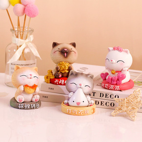 国潮盲盒摆件喵公仔创意潮玩手办汽车内饰桌面蛋糕装饰...