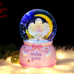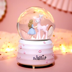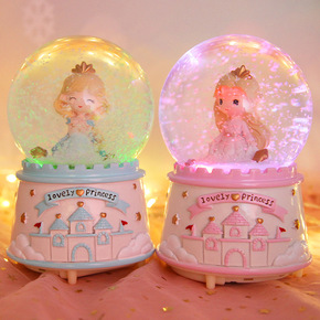 装饰礼品摆件浪漫公主水晶球旋转飘雪花卡通音乐盒...