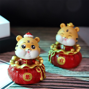 2022虎虎生威生肖虎摇头小摆件装饰汽车烘焙装饰蛋...