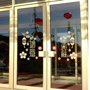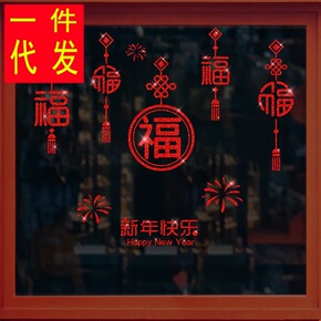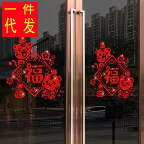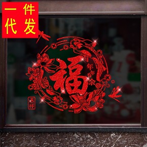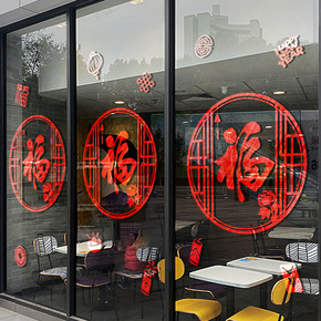新年福字玻璃门贴纸中国风橱窗装饰厨房阳台窗花布置中...