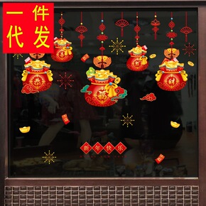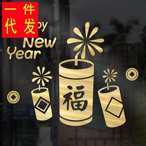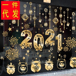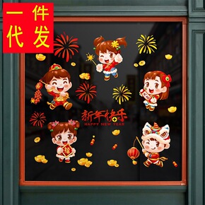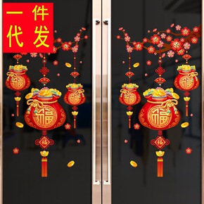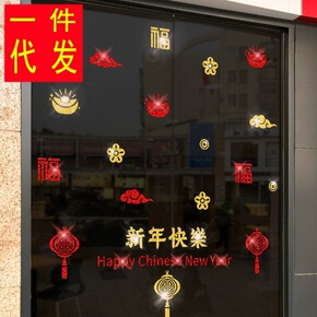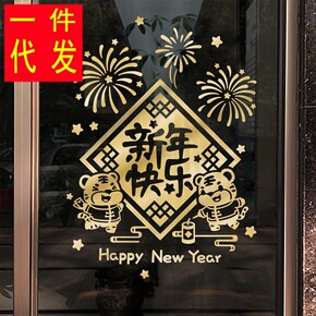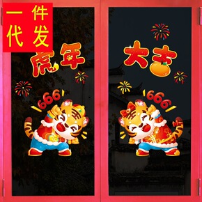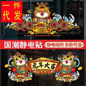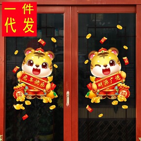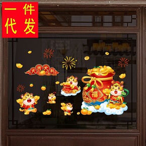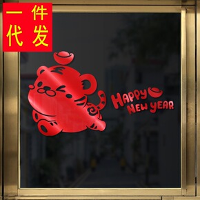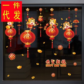 新年装饰品春节挂饰场景布置玻璃贴纸过年虎年店铺推拉...