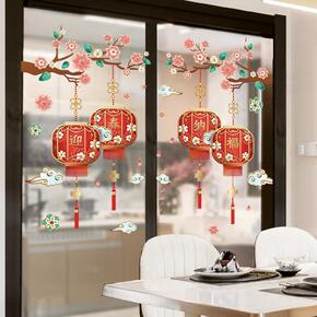 2022新年灯笼吊饰贴画家用虎年春节店铺橱窗布置玻...