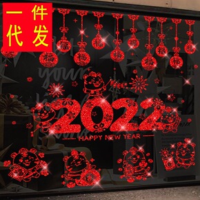 2022新年玻璃窗花贴春节装饰橱窗贴纸新春过年场景...