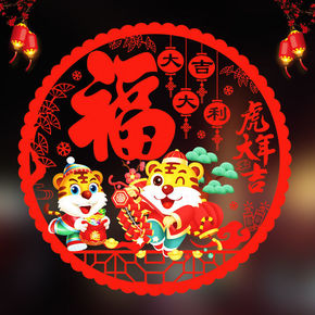 2022年彩色窗花虎年福字贴静电贴玻璃贴剪纸贴春节...