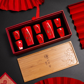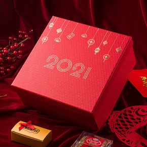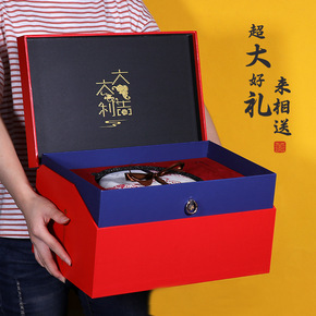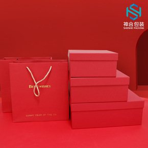 大红色喜庆新年伴手礼盒喜糖大礼包保温杯围巾包装盒天...