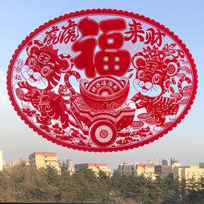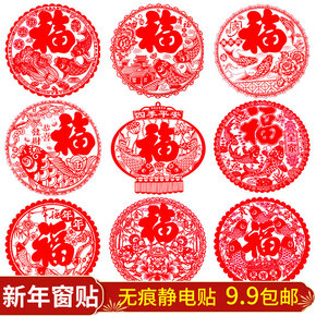 2021福字贴剪纸窗花静电玻璃贴春节客厅移布置创意...