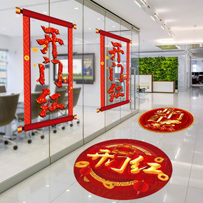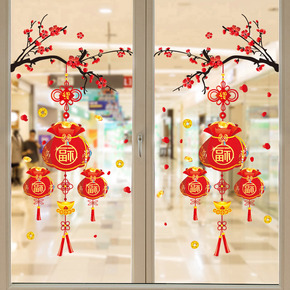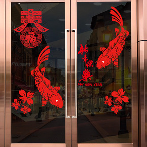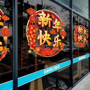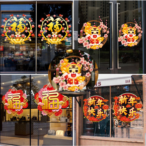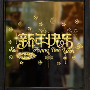 $新年装饰元旦过年墙贴画橱窗玻璃门贴纸商场店铺场景...