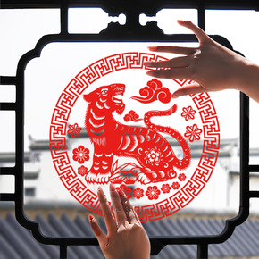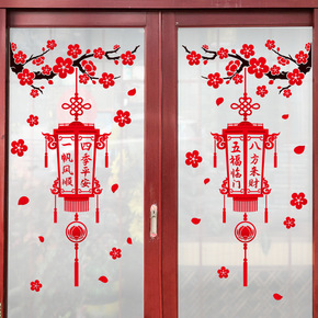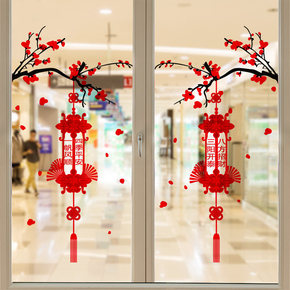 过年店铺装饰橱窗布置中国风新年春节玻璃门贴纸窗花贴...