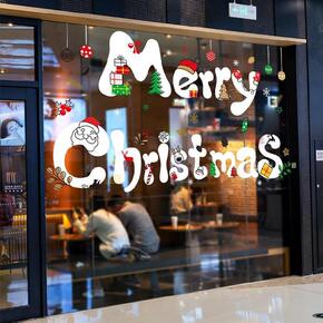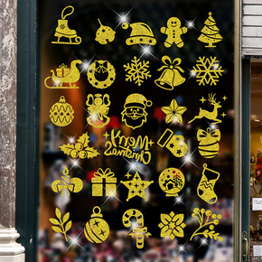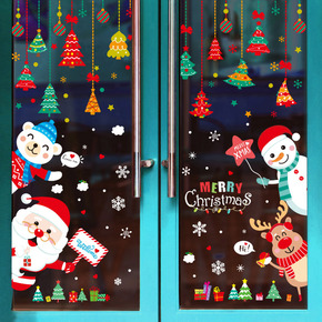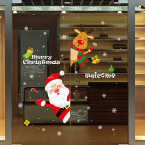 圣诞贴纸静电玻璃贴纸店铺橱窗贴圣诞麋鹿场景布置双开...
