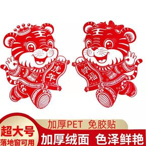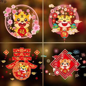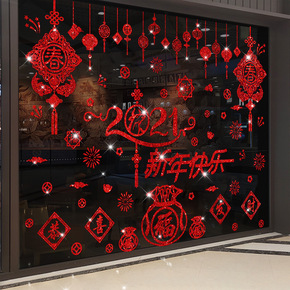 新年玻璃贴纸2021窗花家用过年装饰布置年画墙贴画...