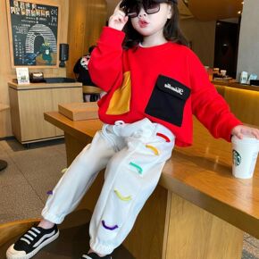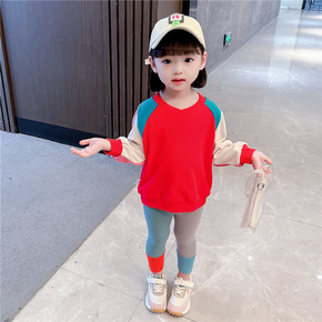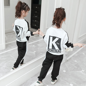 女童套装网红秋装2021新款洋气时髦韩版拼色儿童休...