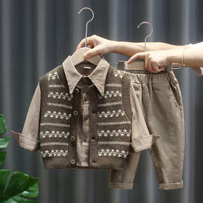 秋冬款儿童小西装套装男童英伦花童礼服男孩马甲小西服...