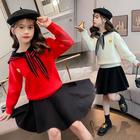 韩版女童针织套装2021新款时髦春秋季儿童学院毛衣...