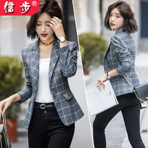 小西装外套女韩版春秋休闲时尚气质短款格子西服201...