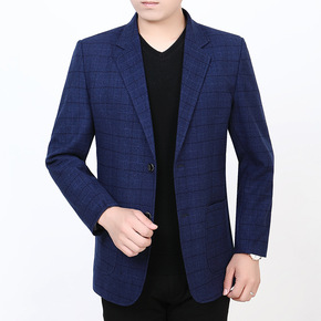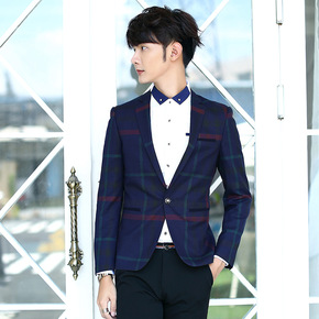 春夏新款男中袖西服礴款青年修身格纹西服外套大码休闲...