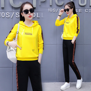 2018新款春秋季时尚女装韩版宽松连帽卫衣两件套学...