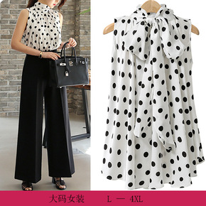 2018夏季新品欧洲站大码女装显瘦大波点高领无袖衬...