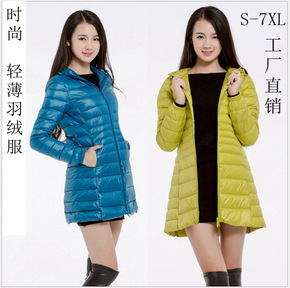 2020新款秋冬轻薄羽绒服女中长款大码连帽修身加大...