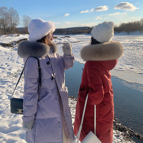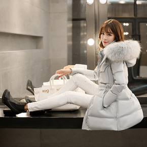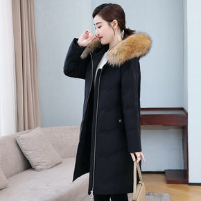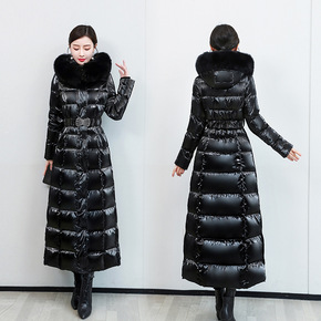 防寒长款外套真狐狸毛90白鸭绒修身过膝长款羽绒服女...