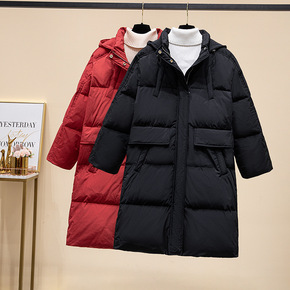 女士中长款羽绒服韩版宽松冬季外套冬装鸭绒2021年...