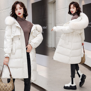 白鸭绒大毛领羽绒服中长款2021冬季新款过膝长款收...