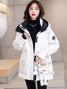 2021冬季新款鸭鸭反光衣修身加厚连帽通勤拉链白鸭...