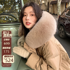 轻奢狐狸毛领羽绒服女长款过膝2021冬皮扣系带修身...
