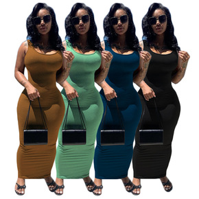 跨境亚马逊新款性感露背纯色仿真丝修身连衣裙宴会背心...