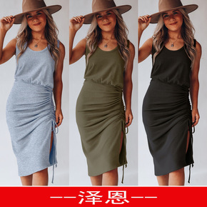 2021年春夏新款跨境亚马逊热卖纯色抽绳开叉修身背...