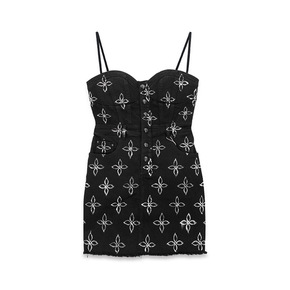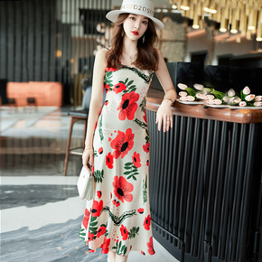 新款热销eBay速通印花吊带露肩修身连衣长裙...