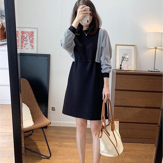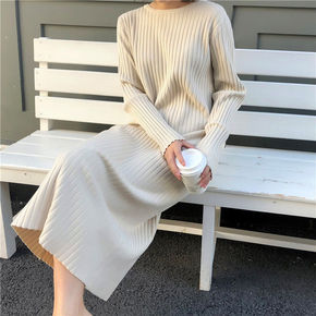 2022秋冬高圆圆毛衫拼提花棉中长裙修身遮肚气质通...