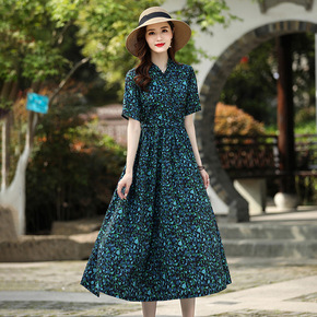2022春夏新款韩版碎花连衣裙女短袖名媛风气质长裙...