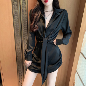 纯欲风性感收腰绑带衬衫女春季新款轻熟风气质显瘦黑色...