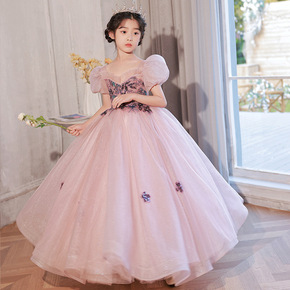 女童主持人晚礼服春钢琴演奏公主裙拖尾端庄大气洋气婚...