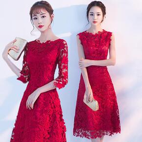 敬酒服新娘2021新款春夏中长款修身蕾丝晚礼服连衣...