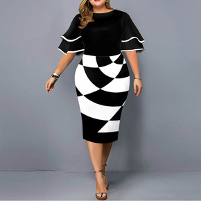 大码连衣裙 ebay亚马逊 2021 新款女士喇叭...